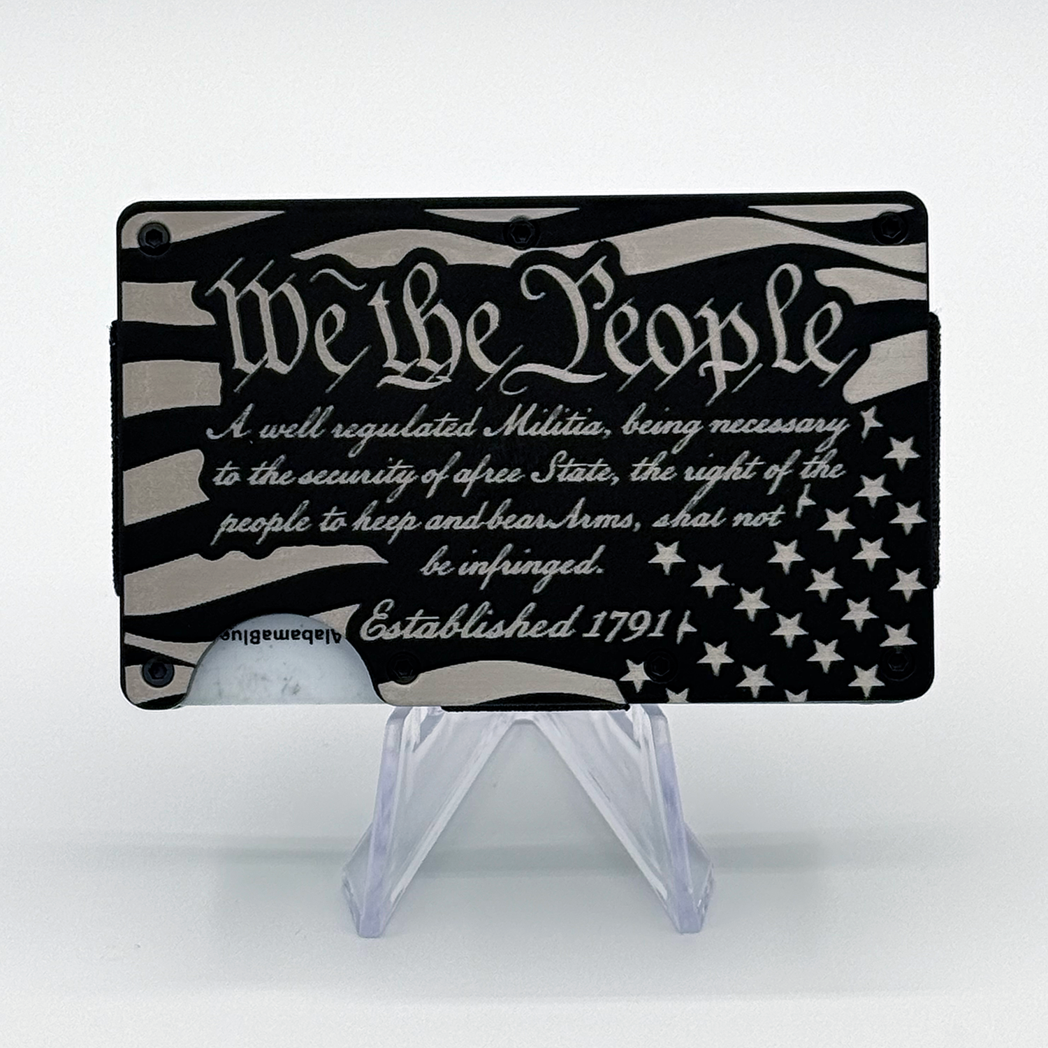 Carry your cards with pride using this We The People wallet, engraved with a We The People flag design. Made from durable metal, this RFID minimalist wallet combines security with patriotism—keeping your essentials safe while honoring American values.